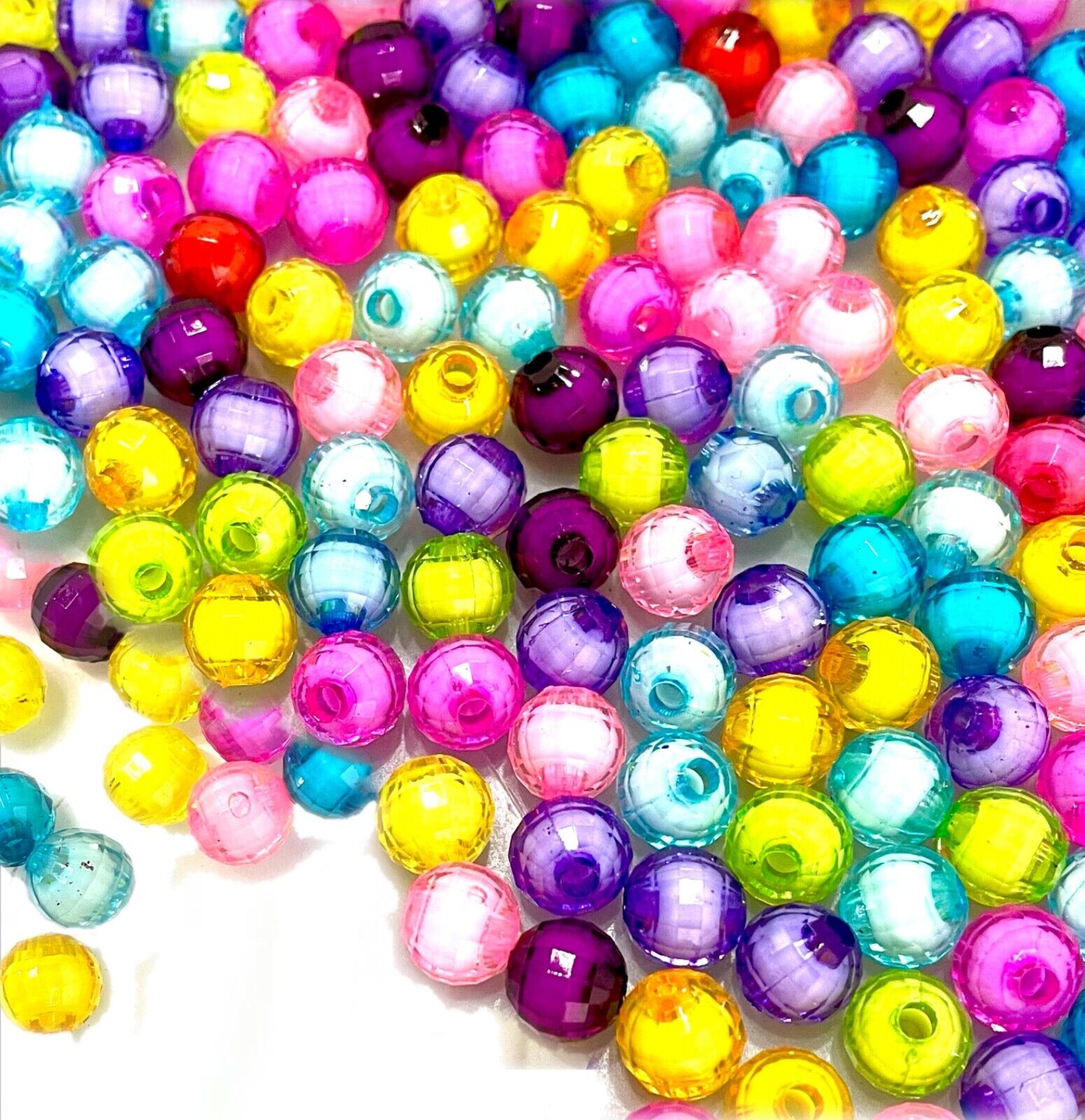150 pcs Faceted Multicolour with White Core 8mm Acrylic Beads