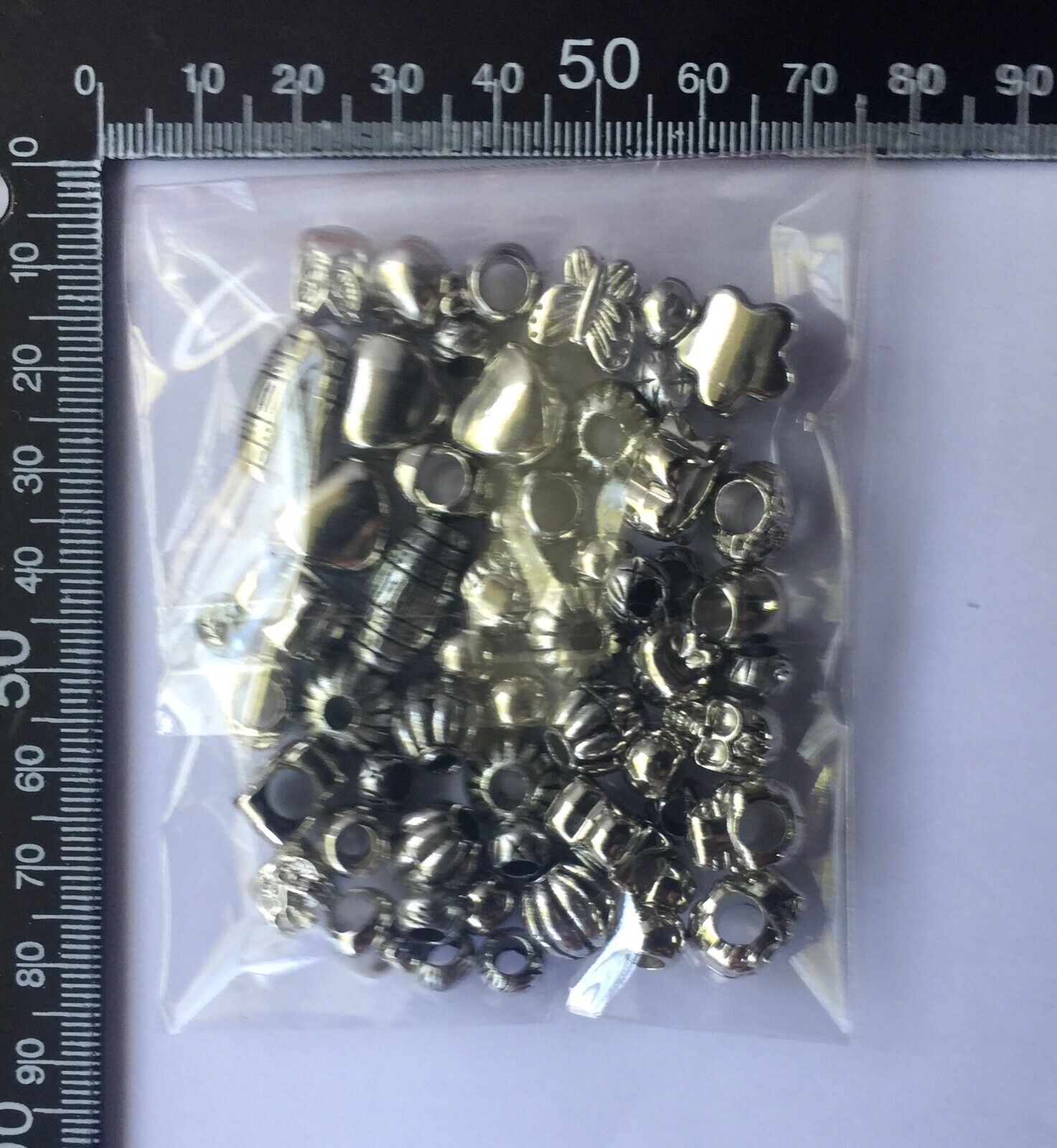 55x Silver & Antique Silver European Style Large Hole Acrylic Beads